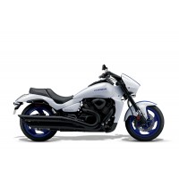 The M109R Black Edition features the following: Blacked-out exhaust system, clutch cover, magneto cover, cylinder head covers, air cleaner cover and final drive case, handlebars, clutch and brake levers, handlebar switch cases, rear view mirrors, fuel tank/instrument cover, front and rear wheels, front and rear brake calipers, frame side covers, rear fender stays, side-stand, steering stem clamps and front forks. Clear taillight and turn signal lenses.